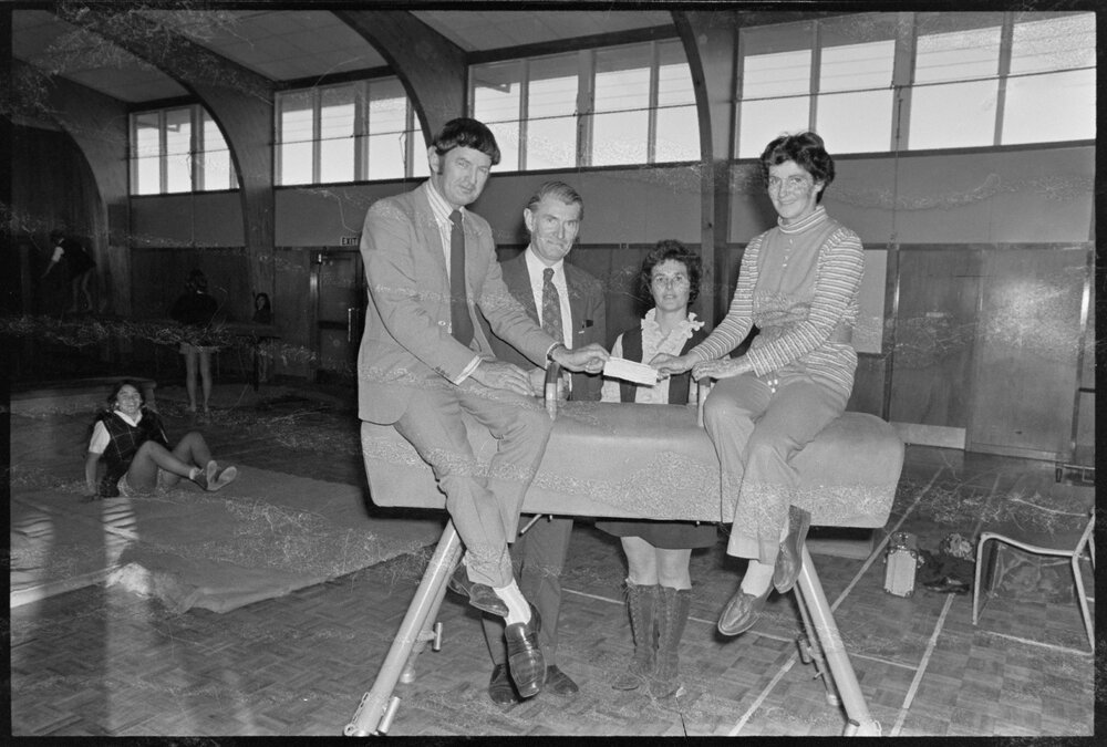 Mount Maunganui Lions present a cheque to the Mount Maunganui Gymnastics Club to pay for the Olympic pommel horse. (29 June 1973). Pae Korokī, accessed 07/04/2026, https://paekoroki.tauranga.govt.nz/nodes/view/113320