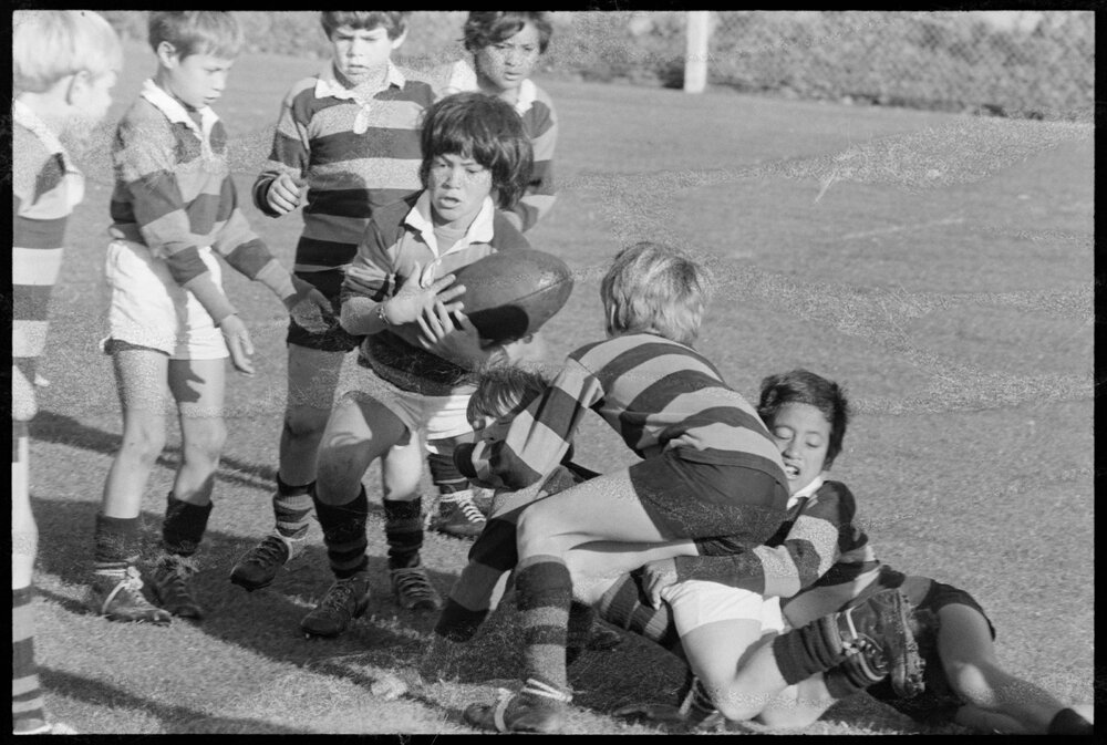 Date30 June 1973Reference Numberphoto gcc-28547DescriptionRugby. Arataki's 12th grade player M. Dickson charges past Cadets Green players at the Tauranga Domain. Published 30 June 1973.FormatNegativePhysical Description35mm black-and-white negativePhotographer/CreatorBay of Plenty Times