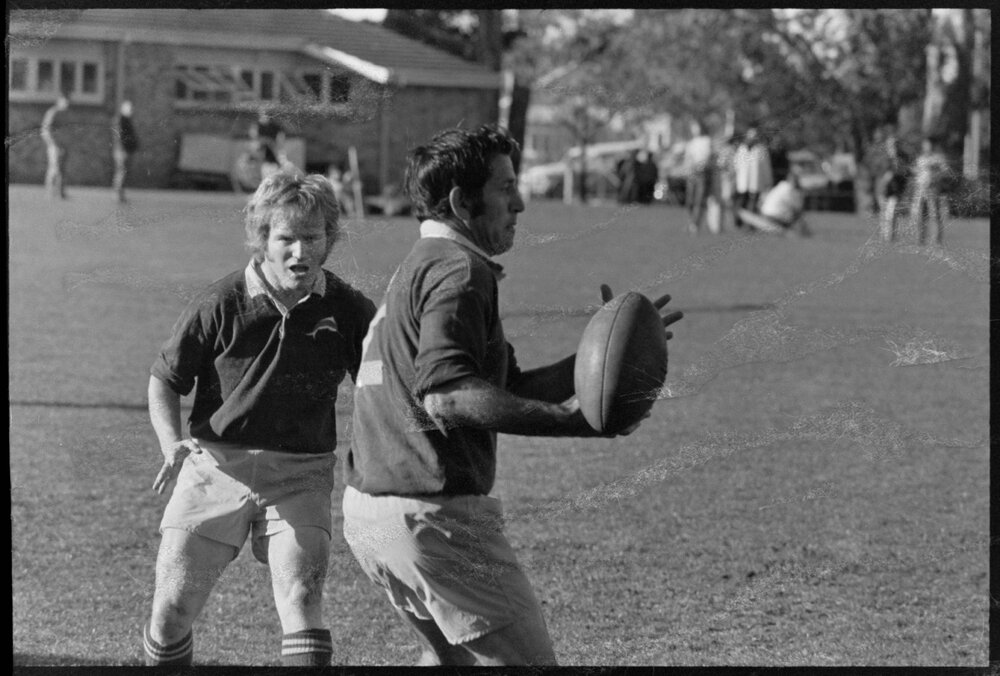 Rugby. Mount Maunganui players with the ball. (2 July 1973). Pae Korokī, accessed 07/04/2026, https://paekoroki.tauranga.govt.nz/nodes/view/113346