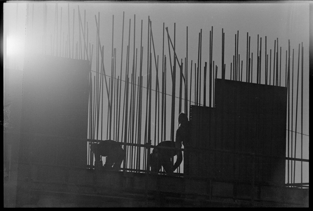 Backlit close-up of reinforcing steel on partially completed sewage pumping station being built at Tauranga City Council's Judea depot. (4 July 1973). Pae Korokī, accessed 07/04/2026, https://paekoroki.tauranga.govt.nz/nodes/view/113362