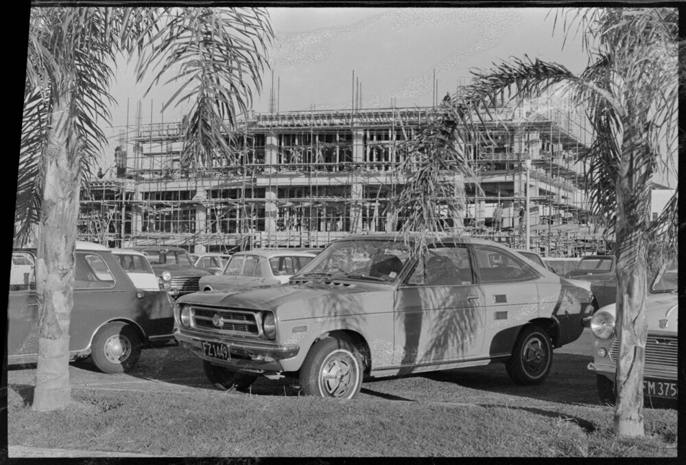 Bay of Plenty Savings Bank building in the Triangle beginning to rise above surrounding buildings. (4 July 1973). Pae Korokī, accessed 07/04/2026, https://paekoroki.tauranga.govt.nz/nodes/view/113363