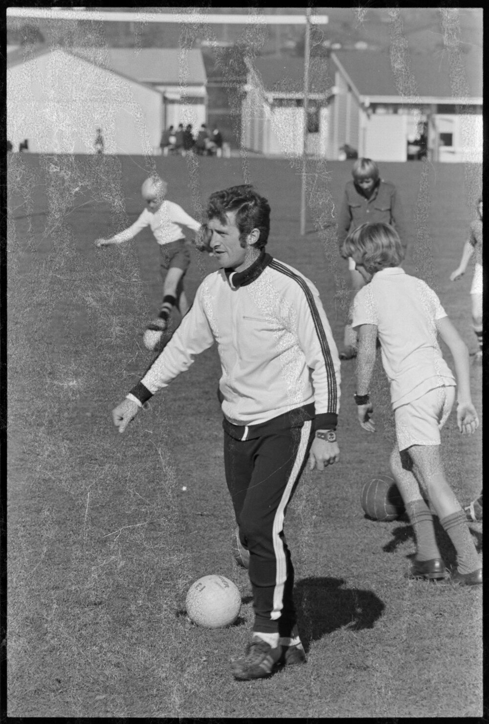Barry Truman working with Tauranga Intermediate School soccer players. (6 July 1973). Pae Korokī, accessed 07/04/2026, https://paekoroki.tauranga.govt.nz/nodes/view/113377