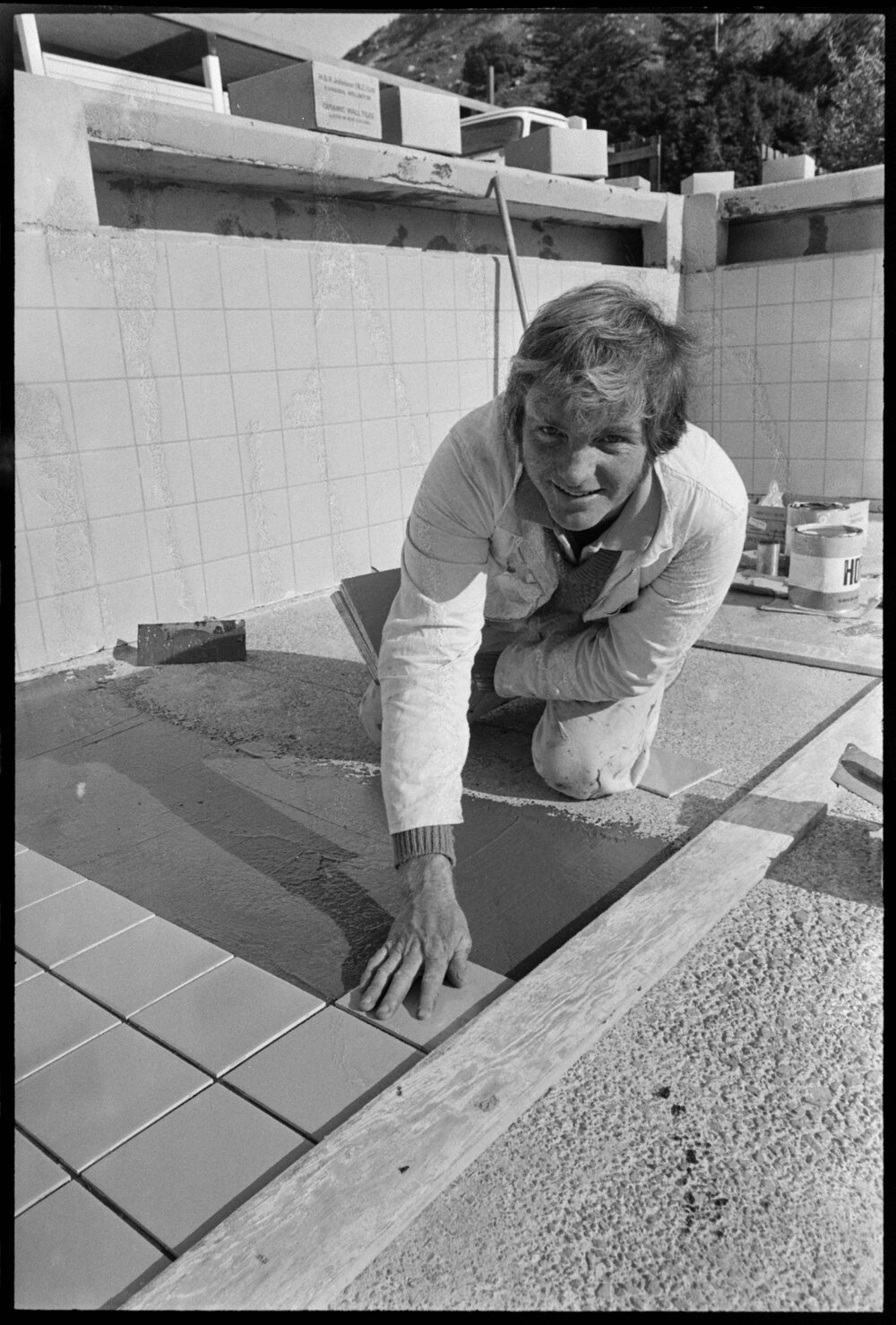 Date10 July 1973Reference Numberphoto gcc-28710DescriptionMr K. Longley retiling the Mount Hot Pools (1/3). Published 10 July 1973.FormatNegativePhysical Description35mm black-and-white negative (1/3)Photographer/CreatorBay of Plenty Times