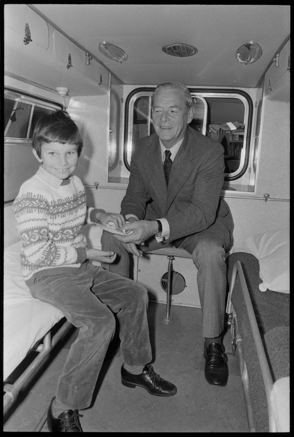 David Abernethy handing his family's donation to Tauranga St John Ambulance Association president Mr E. L. Faulkner. (13 July 1973). Pae Korokī, accessed 07/04/2026, https://paekoroki.tauranga.govt.nz/nodes/view/113431