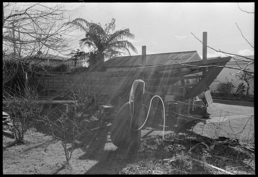 Captain Len Anderson building a half-size replica of the Tauranga scow Alma in his backyard. (14 July 1973). Pae Korokī, accessed 07/04/2026, https://paekoroki.tauranga.govt.nz/nodes/view/113457