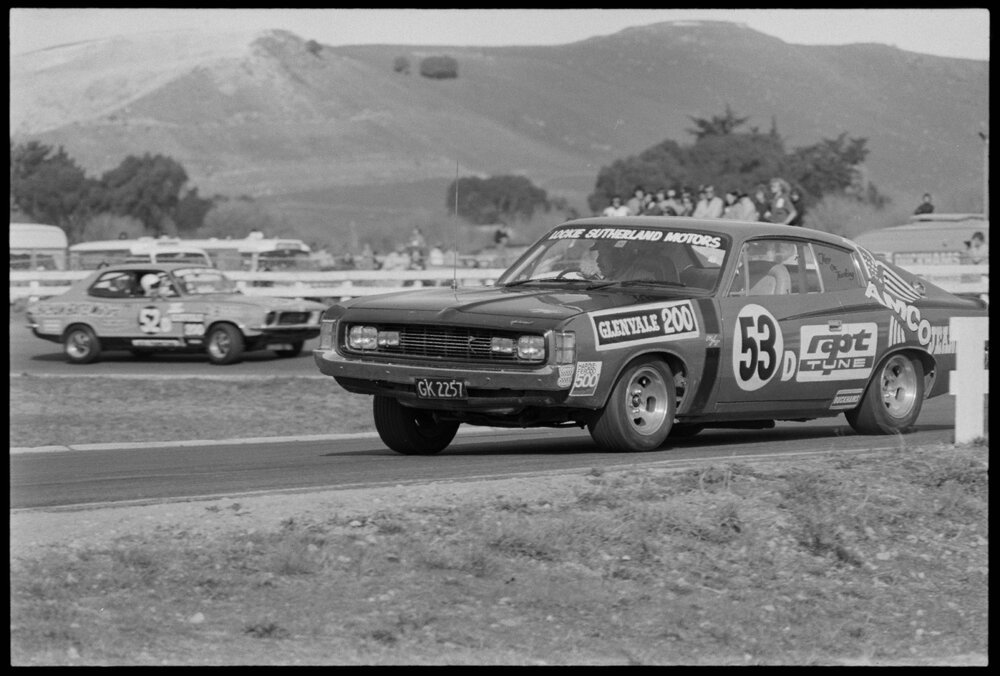 Motor racing. Charger E49 participating in the Glenvale 200 production car race at Bay Park on Sunday. (30 July 1973). Pae Korokī, accessed 06/04/2026, https://paekoroki.tauranga.govt.nz/nodes/view/113554
