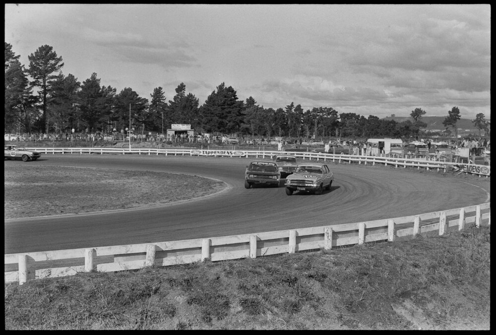 Motor racing. Charger E49 and Torana XU1 participating in the Glenvale 200 production car race at Bay Park on Sunday. Not published. (30 July 1973). Pae Korokī, accessed 06/04/2026, https://paekoroki.tauranga.govt.nz/nodes/view/113557