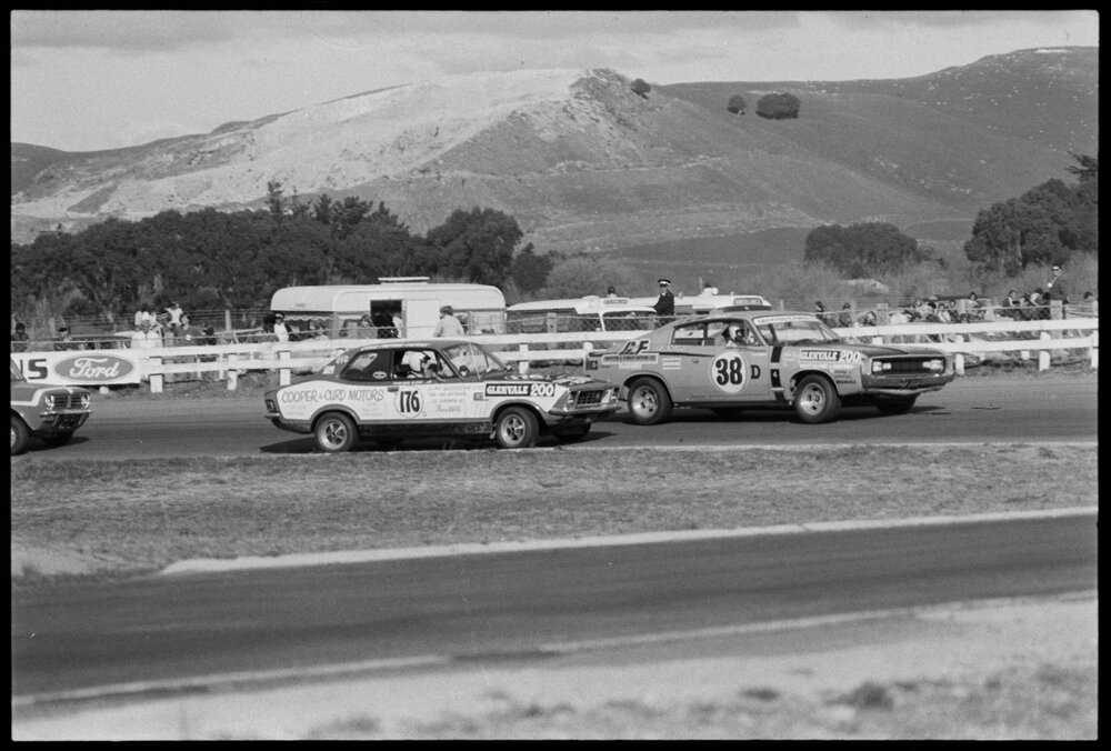 Motor racing. Torana XU1 and Charger E49 participating in the Glenvale 200 production car race at Bay Park on Sunday. (30 July 1973). Pae Korokī, accessed 06/04/2026, https://paekoroki.tauranga.govt.nz/nodes/view/113560