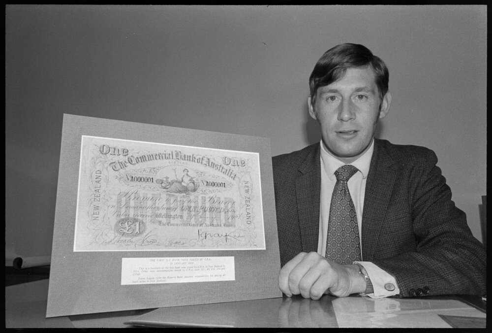 Reproduction of a Commercial Bank of Australia £1 note to go on display at the Tauranga Branch. (1 August 1973). Pae Korokī, accessed 06/04/2026, https://paekoroki.tauranga.govt.nz/nodes/view/113580
