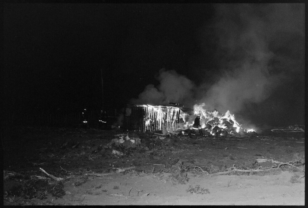 Date3 August 1973Reference Numberphoto gcc-29038DescriptionFire destroyed a hay barn on the property of Mr J. Patterson of Te Maunga, despite firemen's best efforts over four hours (3/3). Published 3 August 1973.FormatNegativePhysical Description35mm black-and-white negative (3/3)Photographer/CreatorBay of Plenty Times