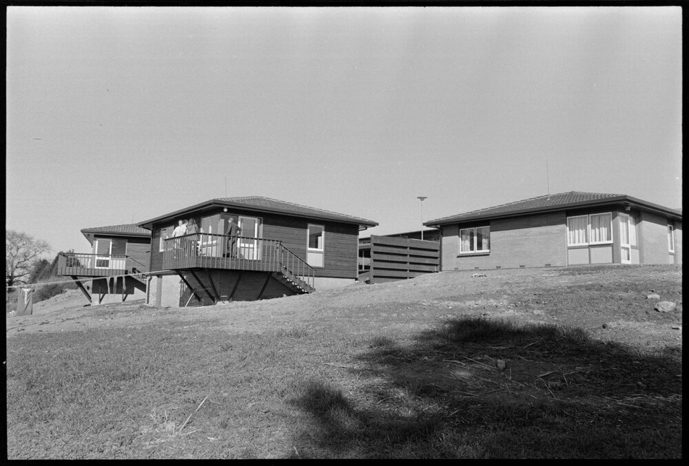 Date3 August 1973Reference Numberphoto gcc-29049DescriptionThree new cottages have been completed at Melrose Home for more independent residents (1/2). Published 3 August 1973.FormatNegativePhysical Description35mm black-and-white negative (1/2)Photographer/CreatorBay of Plenty Times