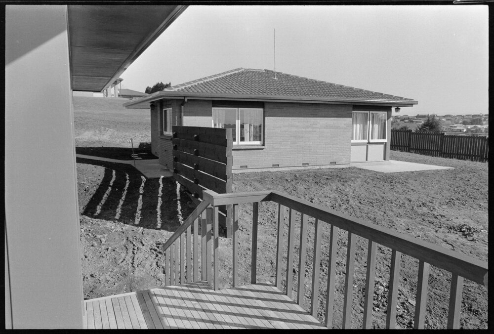 Date3 August 1973Reference Numberphoto gcc-29052DescriptionOne of three new cottages completed at Melrose Home for more independent residents. Not published.FormatNegativePhysical Description35mm black-and-white negativePhotographer/CreatorBay of Plenty Times