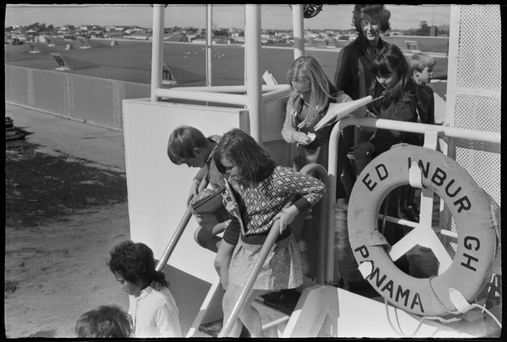 Katikati Primary School pupils on a guided tour of the Filipino log ship Edinburgh berthed at Mount Maunganui wharf. (10 August 1973). Pae Korokī, accessed 06/04/2026, https://paekoroki.tauranga.govt.nz/nodes/view/113693