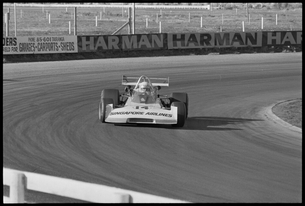 Motor racing. Graeme Lawrence performing suspension tests at Bay Park Raceway. (10 August 1973). Pae Korokī, accessed 06/04/2026, https://paekoroki.tauranga.govt.nz/nodes/view/113697