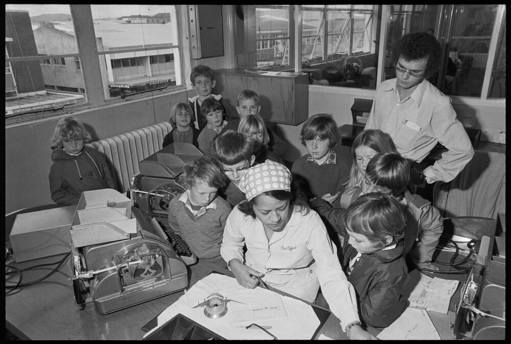 Pillans Point School students visiting Tauranga's Chief Post Office watch a telegram being prepared for delivery. (14 August 1973). Pae Korokī, accessed 06/04/2026, https://paekoroki.tauranga.govt.nz/nodes/view/113703