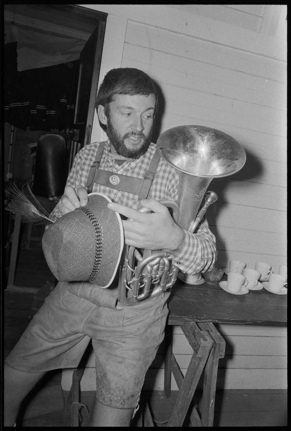 Mr Hermann Otto, helping the Tauranga Municipal Band prepare for a fundraising Bavarian stein evening.