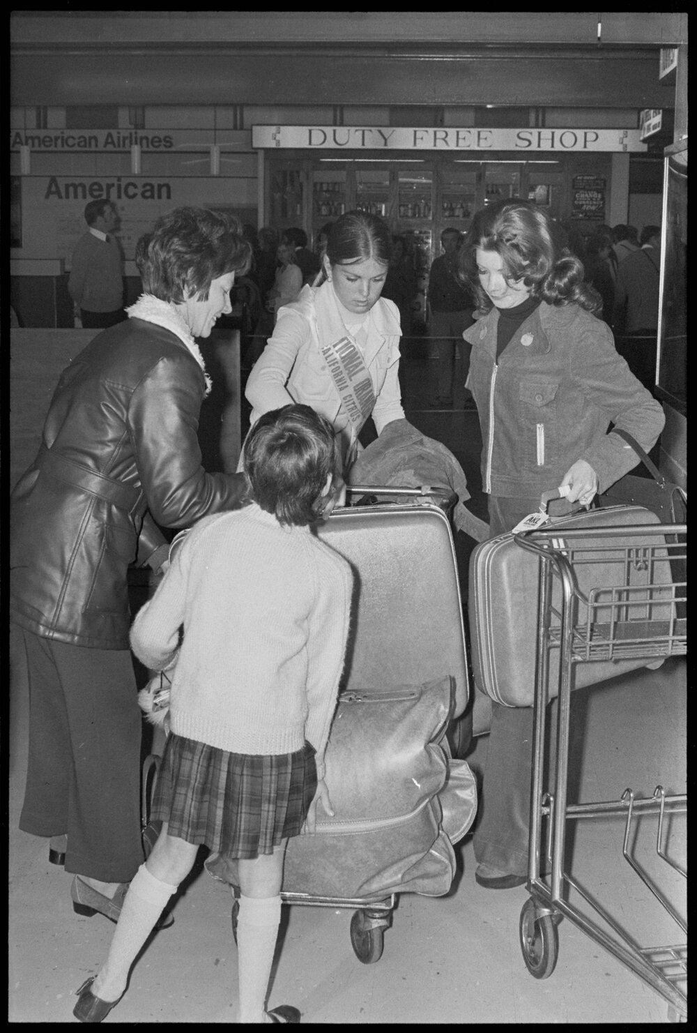Caroline Fogg, the 1973 California Citrus Queen, being greeted at Auckland International Airport by reigning Bay of Plenty Queen Rosemary Caird. (20 August 1973). Pae Korokī, accessed 06/04/2026, https://paekoroki.tauranga.govt.nz/nodes/view/113752