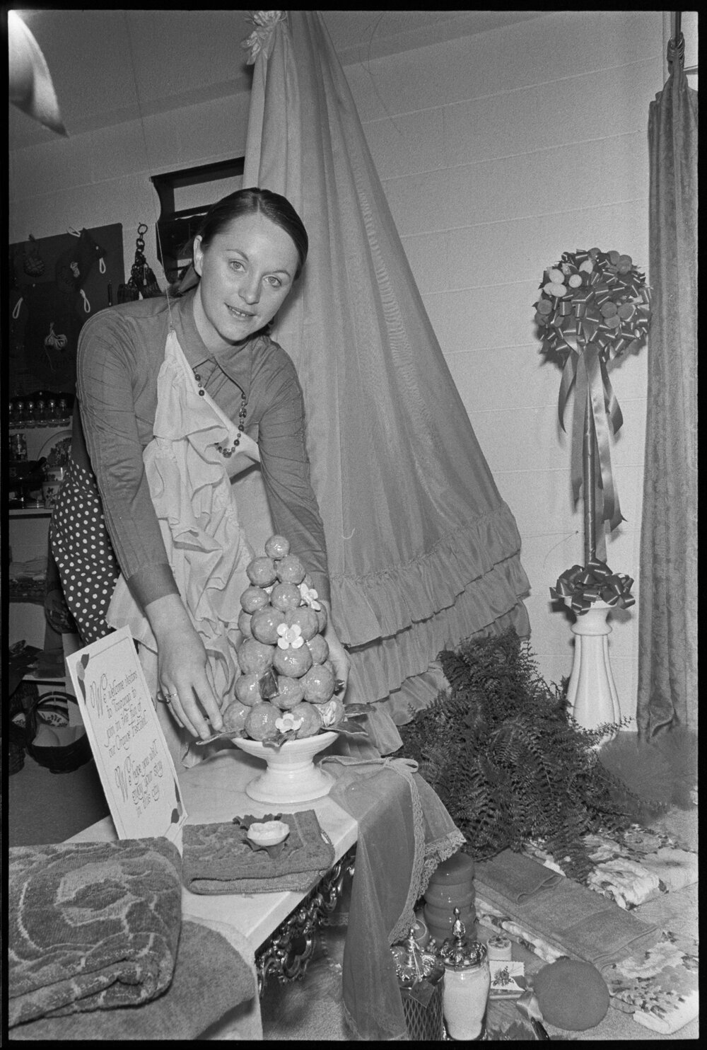 Mrs Helen Homer, owner of the winning shop in the 1973 Orange Festival window dressing competition.
