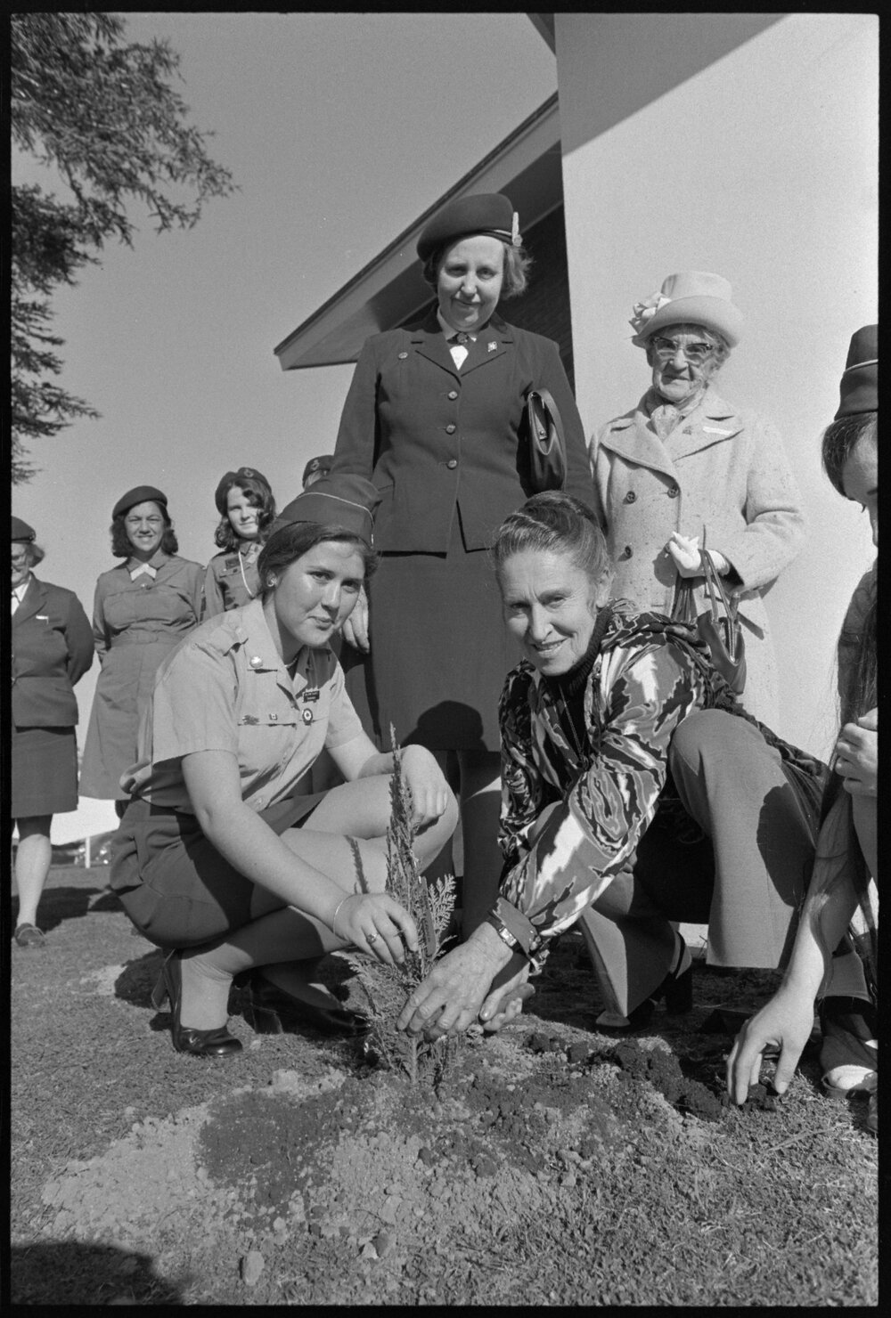 Guides celebrating the movement's Golden Jubilee in the Bay of Plenty plant a shrub outside St Peter's Presbyterian Church. (31 August 1973). Pae Korokī, accessed 05/04/2026, https://paekoroki.tauranga.govt.nz/nodes/view/113822
