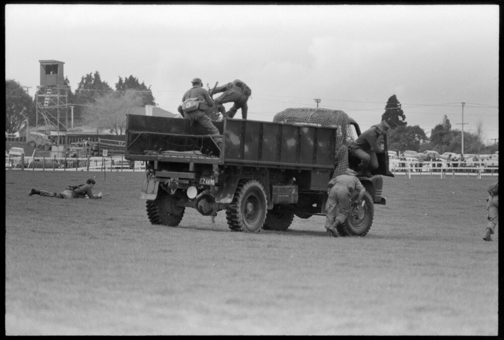 6RNZIR (Haurakis) stage an ambush demonstration for the Orange Festival gala day at the Bay of Plenty racecourse. (3 September 1973). Pae Korokī, accessed 05/04/2026, https://paekoroki.tauranga.govt.nz/nodes/view/113851