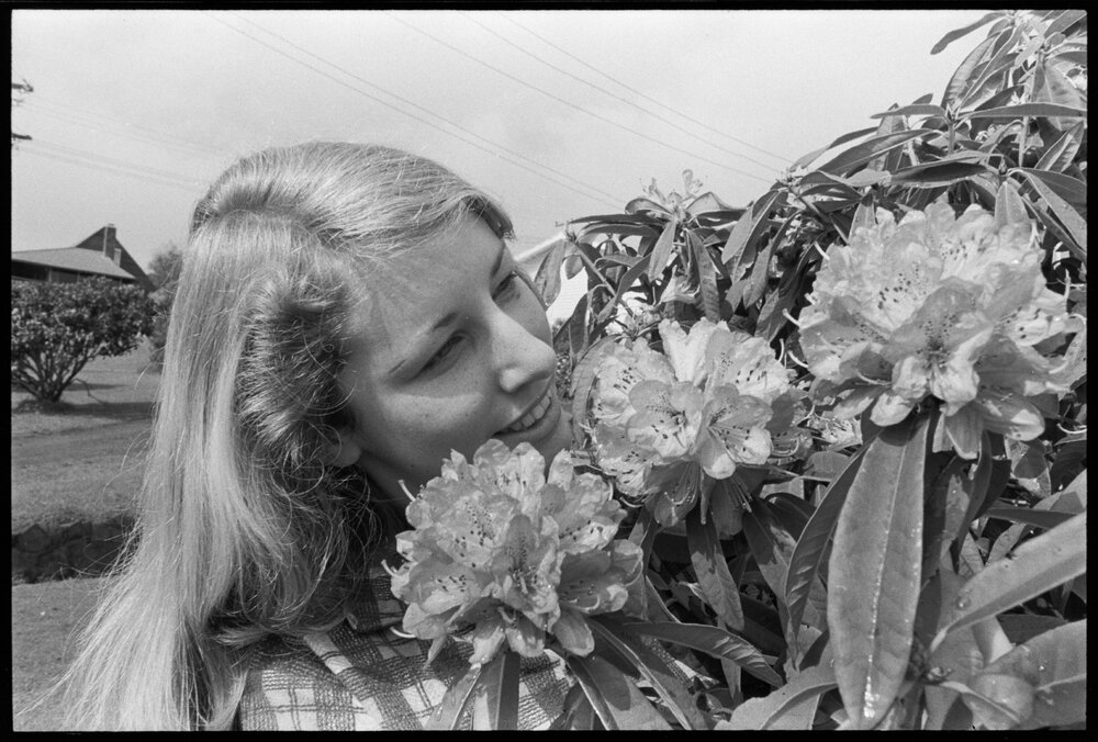 Mandy McLean viewing new rhododendron flowers in a Tauranga garden. (4 September 1973). Pae Korokī, accessed 05/04/2026, https://paekoroki.tauranga.govt.nz/nodes/view/113859