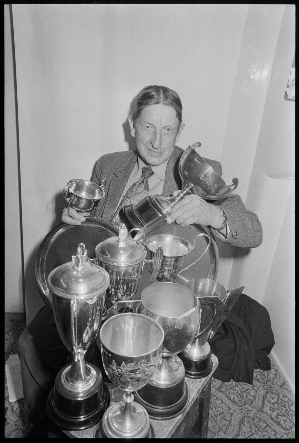 Mr F. J. Cole of Judea with some of his trophies won at regional A and P shows for growing vegetables. (5 September 1973). Pae Korokī, accessed 05/04/2026, https://paekoroki.tauranga.govt.nz/nodes/view/113866