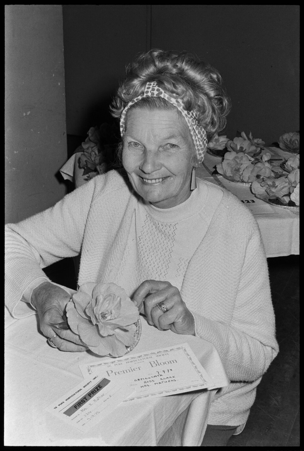 Mrs M. Mathers of Waihī with her prize-winning bloom at the Te Puke Spring Flower Show. (10 September 1973). Pae Korokī, accessed 05/04/2026, https://paekoroki.tauranga.govt.nz/nodes/view/113885