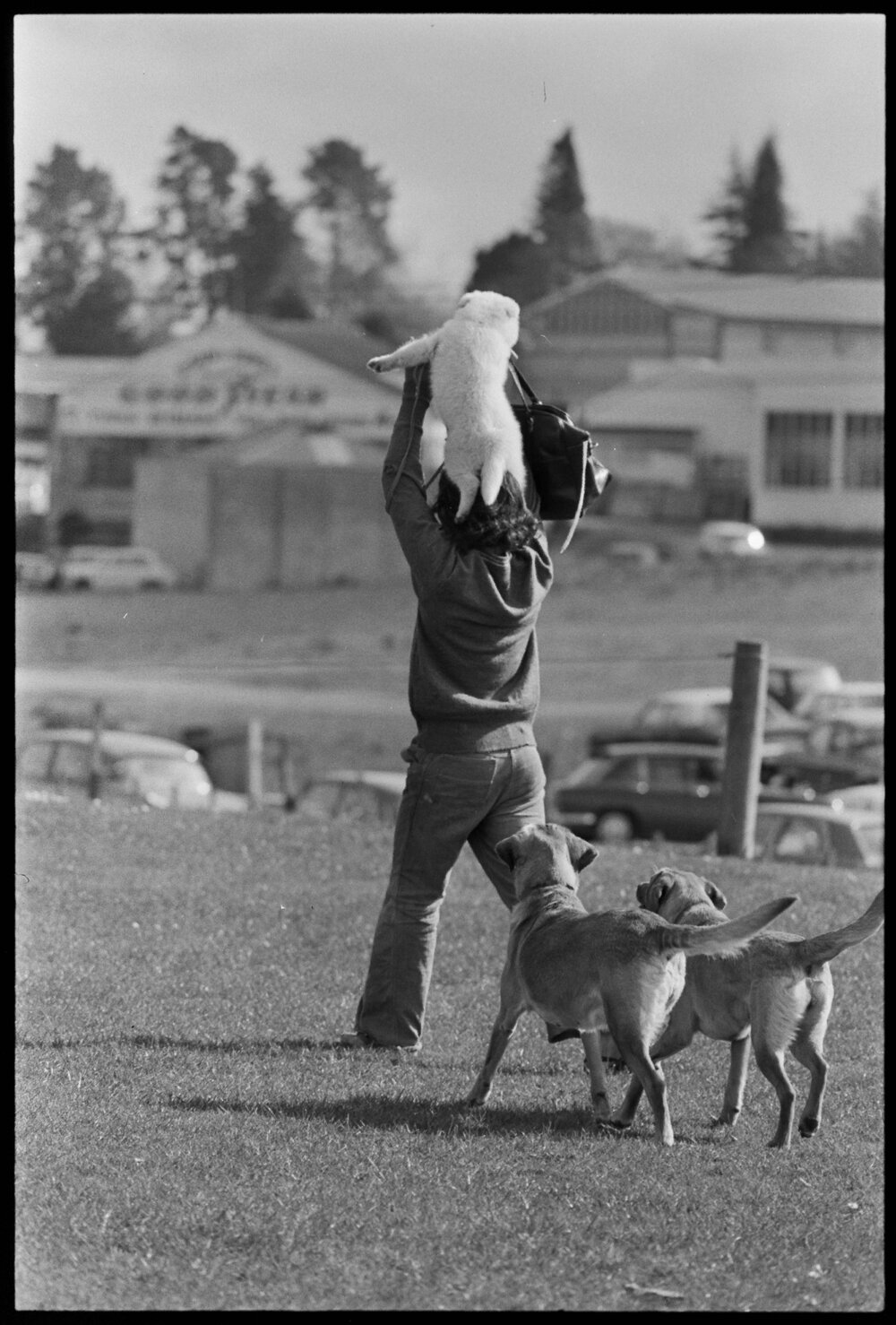 Date11 September 1973Reference Numberphoto gcc-29575DescriptionBoy holding dog above head in Te Awamutu, impressing larger dogs. Published 11 September 1973.FormatNegativePhysical Description35mm black-and-white negativePhotographer/CreatorBay of Plenty Times