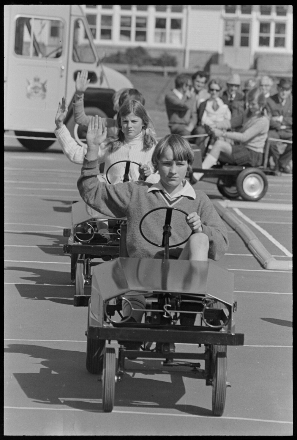 Te Puke Primary School pupils demonstrating new traffic training equipment. (11 September 1973). Pae Korokī, accessed 05/04/2026, https://paekoroki.tauranga.govt.nz/nodes/view/113898