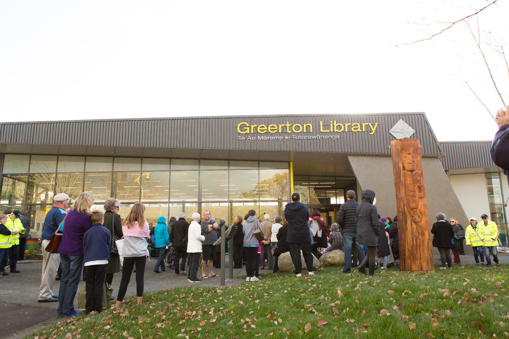 Crowds during the opening of Greerton Library, 2016 (15 July, 2016). Pae Korokī, accessed 24/03/2026, https://paekoroki.tauranga.govt.nz/nodes/view/114092