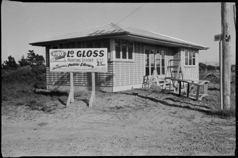Today's Te Ao Mārama – Mount Maunganui Library, began its life in a temporary building on Pūriri Street in August 1963, thanks to a building loaned by local builder Barry Beazley.