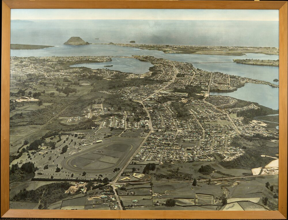Aerial view of Tauranga - Te Papa, taken from the South (c. 1950s). Pae Korokī, accessed 04/04/2026, https://paekoroki.tauranga.govt.nz/nodes/view/114233