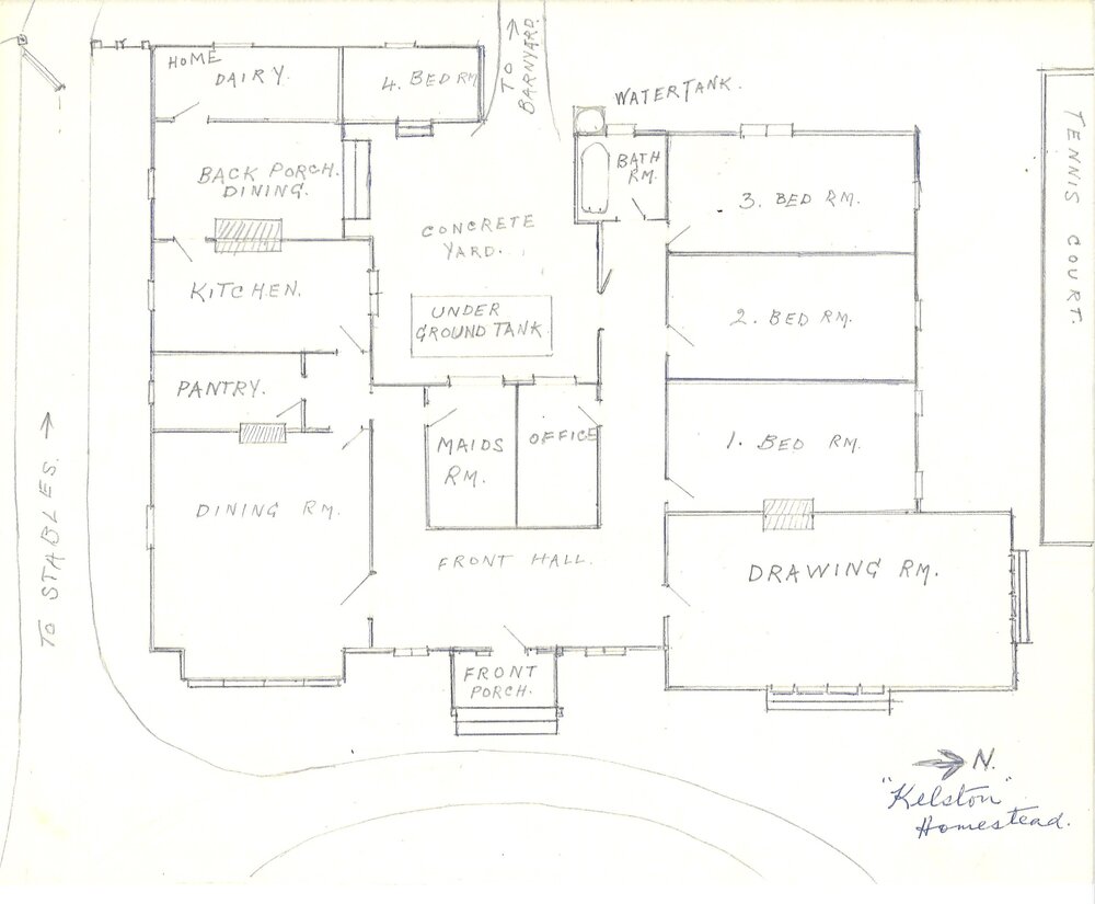 Yerex, MAx M, Floor plan of Kelston Homestead by Max Yerex in 1975 (Sketched 1975). Pae Korokī, accessed 19/03/2026, https://paekoroki.tauranga.govt.nz/nodes/view/114408