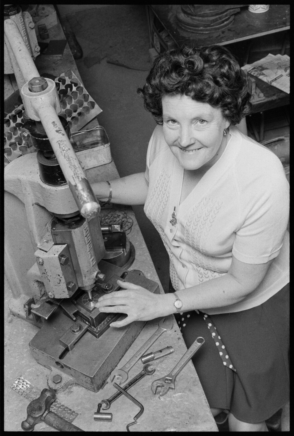 Date4 December 1973Reference Numberphoto gcc-30830DescriptionMrs Shirley Mitchell, assembles a bracelet at H. K. Graham's workshop in 11th Avenue and Cameron Road. "I do all types of work here — we all do." Published 4 December 1973.FormatNegativePhysical Description35mm black-and-white negative (8/12)Photographer/CreatorBay of Plenty Times