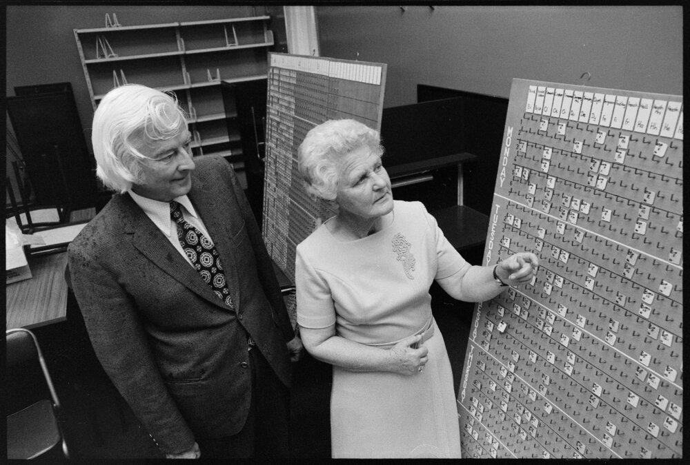 Date4 December 1974Reference Numberphoto gcc-30835DescriptionMr L. Waugh and Miss P. Blackman at Mount Maunganui College. The two teachers will retire soon after a combined total of 75 years' teaching. Published 4 December 1974.FormatNegativePhysical Description35mm black-and-white negative (1/3)Photographer/CreatorBay of Plenty Times