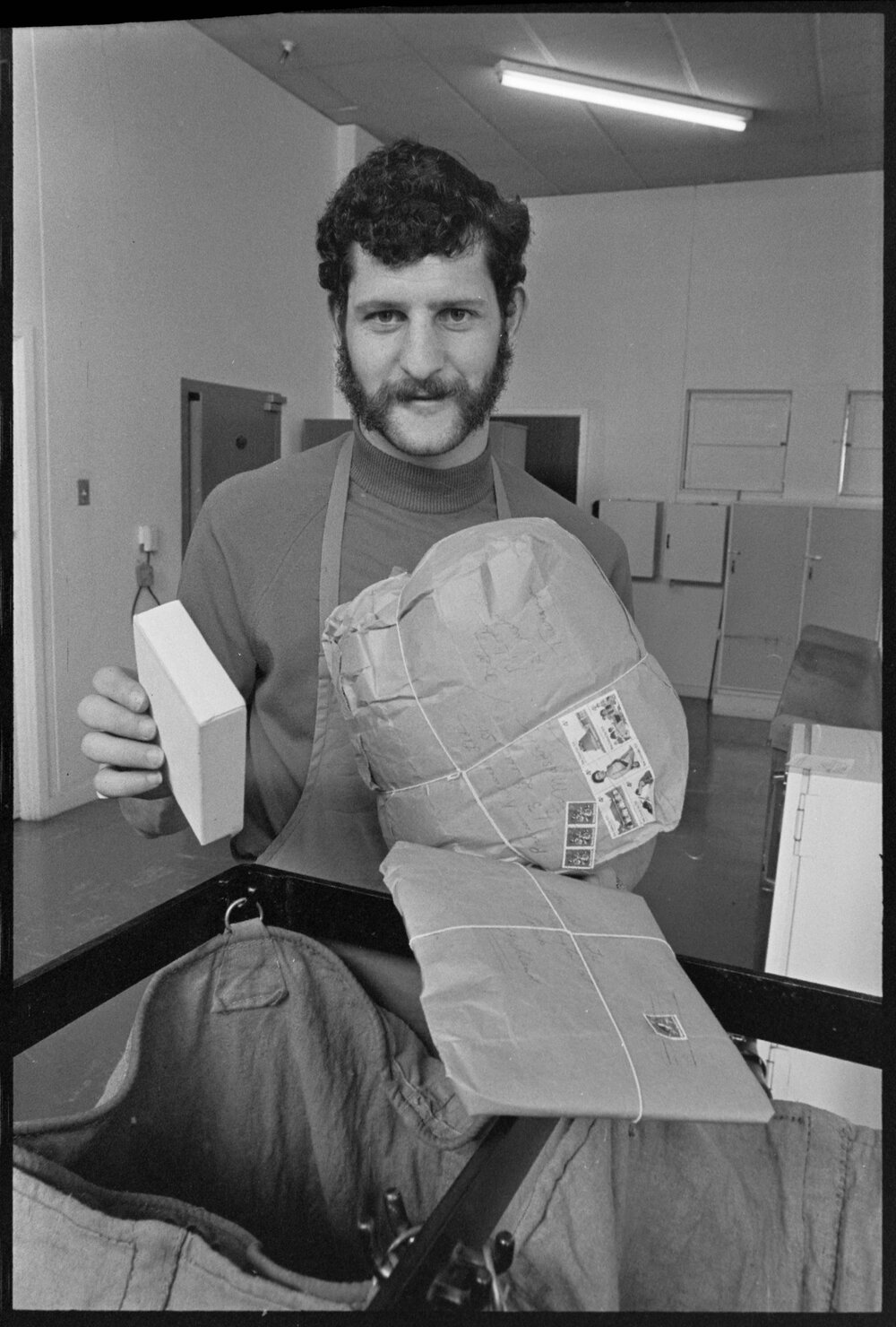 Date4 December 1974Reference Numberphoto gcc-30841DescriptionSorting Christmas parcels at the Tauranga South Post Office, is Mr F. L. Cruywagen, mail clerk. Published 4 December 1974.FormatNegativePhysical Description35mm black-and-white negative (1/3)Photographer/CreatorBay of Plenty Times