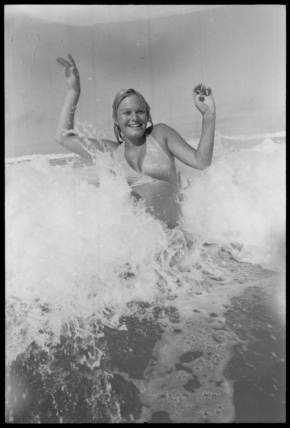 Date5 December 1974Reference Numberphoto gcc-30873DescriptionAnne Paul in the waves at Mount Maunganui. Published 5 December 1974.FormatNegativePhysical Description35mm black-and-white negative (1/3)Photographer/CreatorBay of Plenty Times