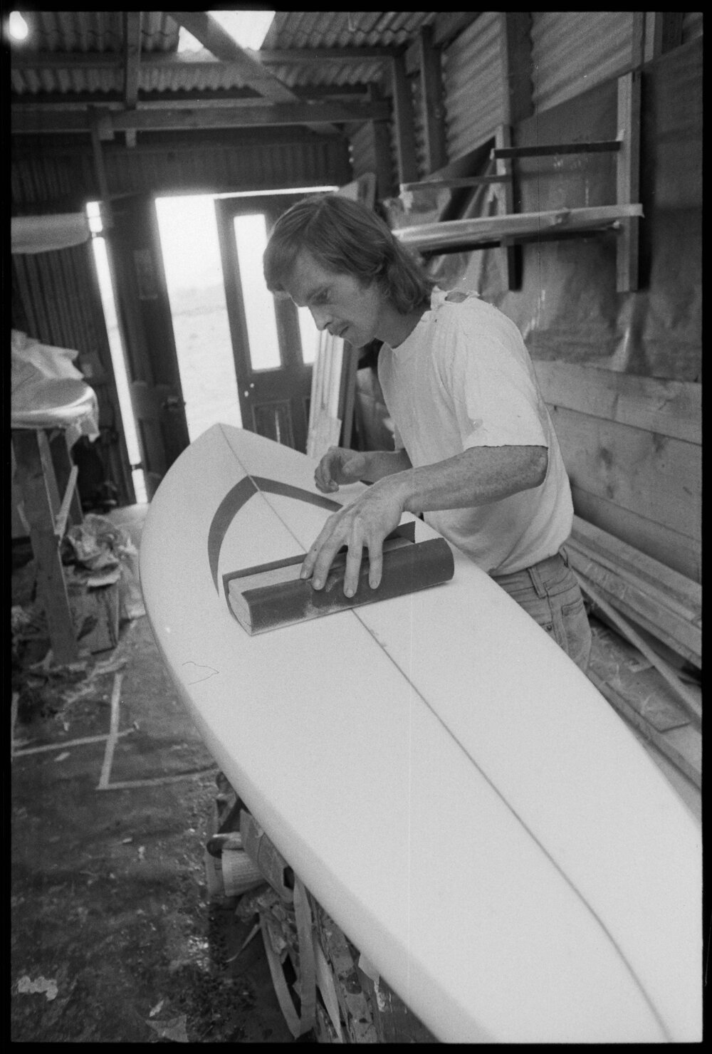 Date5 December 1974Reference Numberphoto gcc-30888DescriptionTony Waterhouse applies fibreglass resin to a surfboard, at the company he runs with Hamish Aitken and Neville Hill, Greyseal Ltd in Welcome Bay. Published 5 December 1974.FormatNegativePhysical Description35mm black-and-white negative (4/9)Photographer/CreatorBay of Plenty Times