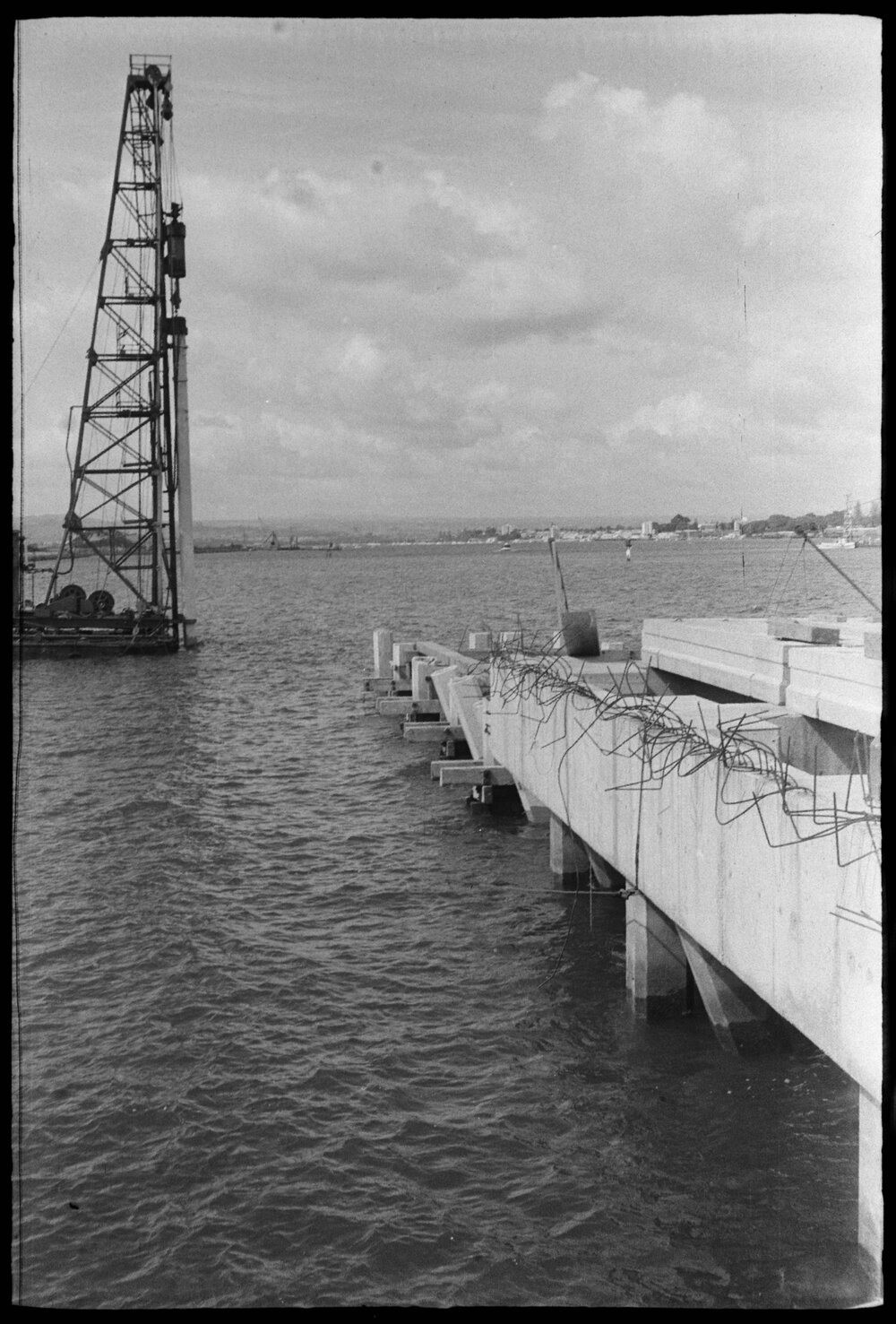 Date7 December 1974Reference Numberphoto gcc-30935DescriptionBay of Plenty Harbour Board's construction of the number nine wharf extension. Designed for the heaviest and most up-to-date cargo handling operations this $1.38 million project add's a further 300 feet to the wharf at Mount Maunganui. Published 7 December 1974.FormatNegativePhysical Description35mm black-and-white negative (1/3)Photographer/CreatorBay of Plenty Times