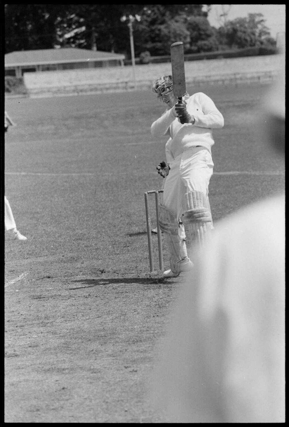 Date10 December 1974Reference Numberphoto gcc-31003DescriptionBay of Plenty batsman, Tony Kane, of Tauranga, hitting a lofted drive during his innings of 29 against Thames Valley-King Country on the opening day of the Northern Districts secondary schools cricket tournament at the Tauranga Domain. Published 10 December 1974.FormatNegativePhysical Description35mm black-and-white negative (2/6)Photographer/CreatorBay of Plenty Times