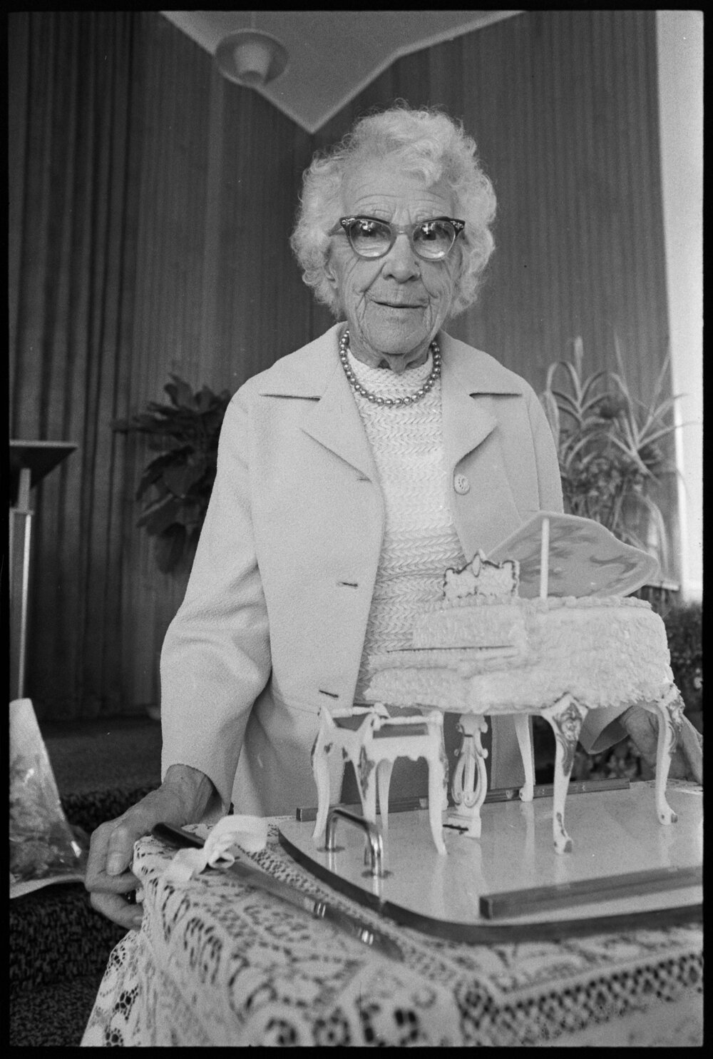 Date12 December 1974Reference Numberphoto gcc-31069DescriptionA cake in the shape of a grand piano was made to celebrate the 95th birthday of Miss E. Parry, of Tauranga, on Tuesday. Miss Parry's birthday coincided with Women's Fellowship Christmas breakup at the Assembly of God Church, Ōtūmoetai. Published 12 December 1974.FormatNegativePhysical Description35mm black-and-white negative (1/6)Photographer/CreatorBay of Plenty Times
