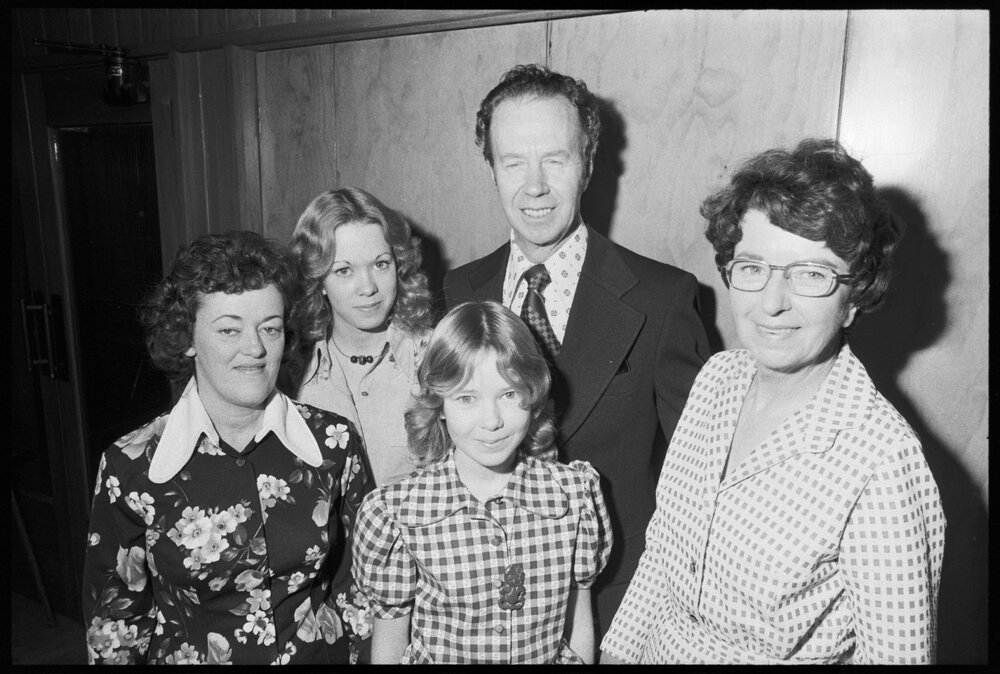 Date12 December 1974Reference Numberphoto gcc-31076DescriptionMr Carson reunited with his sister, Mrs Wakelin, of Tauranga (right), Mrs Carson and their two children Judy and Nancy.Published 12 December 1974.FormatNegativePhysical Description35mm black-and-white negative (2/6)Photographer/CreatorBay of Plenty Times