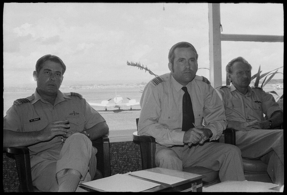 Date12 December 1974Reference Numberphoto gcc-31100DescriptionTauranga Aero Club club captain, Mr Bill Baldwin, discusses the plans for the Royal New Zealand Aero Club's national pageant at Tauranga with Squadron Leaders P. J. McKay (centre) and J. M. Terry, both from Whenuapai. Published 12 December 1974.FormatNegativePhysical Description35mm black-and-white negative (2/6)Photographer/CreatorBay of Plenty Times