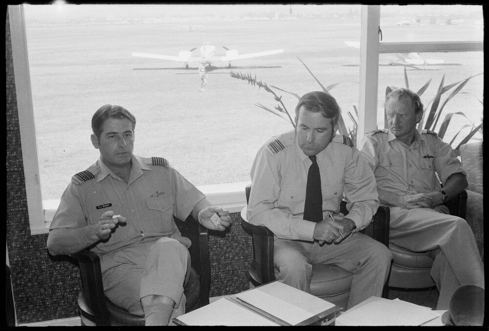 Date12 December 1974Reference Numberphoto gcc-31101DescriptionTauranga Aero Club club captain, Mr Bill Baldwin, discusses the plans for the Royal New Zealand Aero Club's national pageant at Tauranga with Squadron Leaders P. J. McKay (centre) and J. M. Terry, both from Whenuapai. Published 12 December 1974.FormatNegativePhysical Description35mm black-and-white negative (3/6)Photographer/CreatorBay of Plenty Times