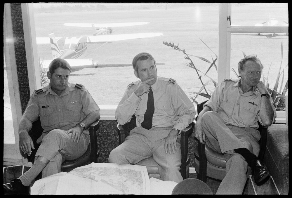 Date12 December 1974Reference Numberphoto gcc-31104DescriptionTauranga Aero Club club captain, Mr Bill Baldwin, discusses the plans for the Royal New Zealand Aero Club's national pageant at Tauranga with Squadron Leaders P. J. McKay (centre) and J. M. Terry, both from Whenuapai. Published 12 December 1974.FormatNegativePhysical Description35mm black-and-white negative (6/6)Photographer/CreatorBay of Plenty Times