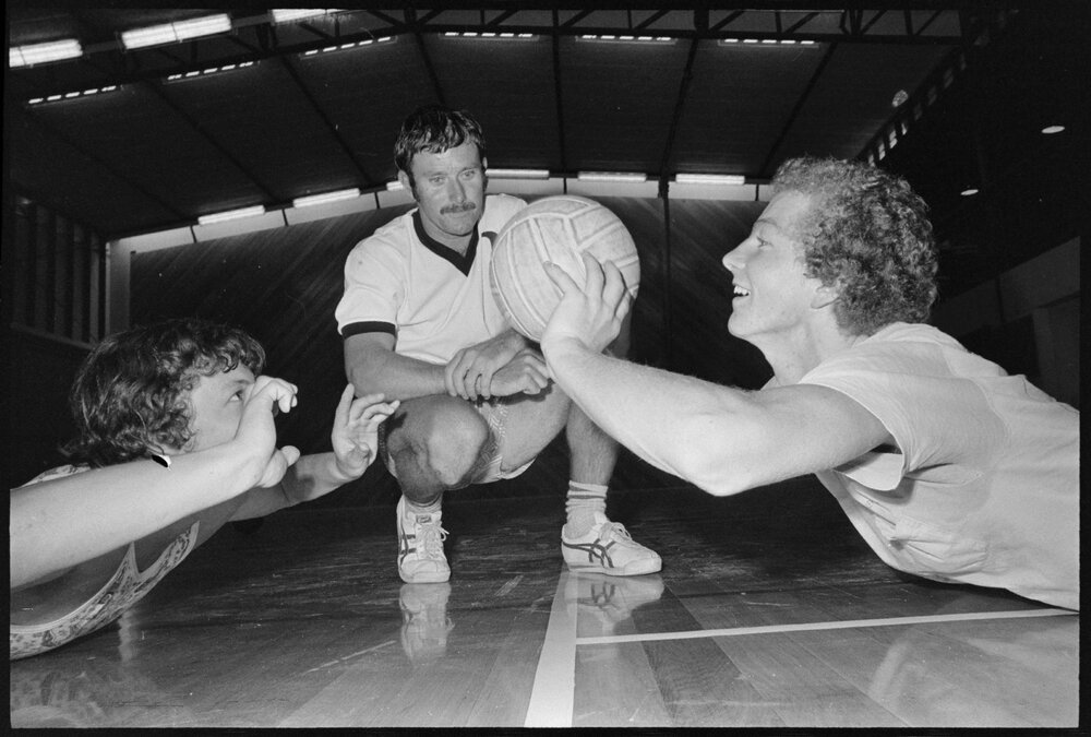 Date14 December 1974Reference Numberphoto gcc-31138DescriptionNeville Thomson, of Auckland (right), with Robbie Wilson (Wellington, left) during a national junior volleyball coaching session at Ōtūmoetai College. In the centre is the national junior men's coach, Mr Mike Harris. The course continued today and is to conclude tomorrow.Published 14 December 1974.FormatNegativePhysical Description35mm black-and-white negative (1/6)Photographer/CreatorBay of Plenty Times