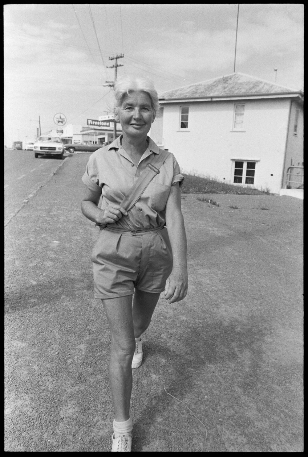 Date14 December 1974Reference Numberphoto gcc-31165DescriptionGreytown's Mrs Lanna Brown walked through Tauranga on the final stages of her eight month walking tour of New Zealand which will have taken her up and down both coasts of New Zealand. Published 14 December 1974.FormatNegativePhysical Description35mm black-and-white negative (4/9)Photographer/CreatorBay of Plenty Times