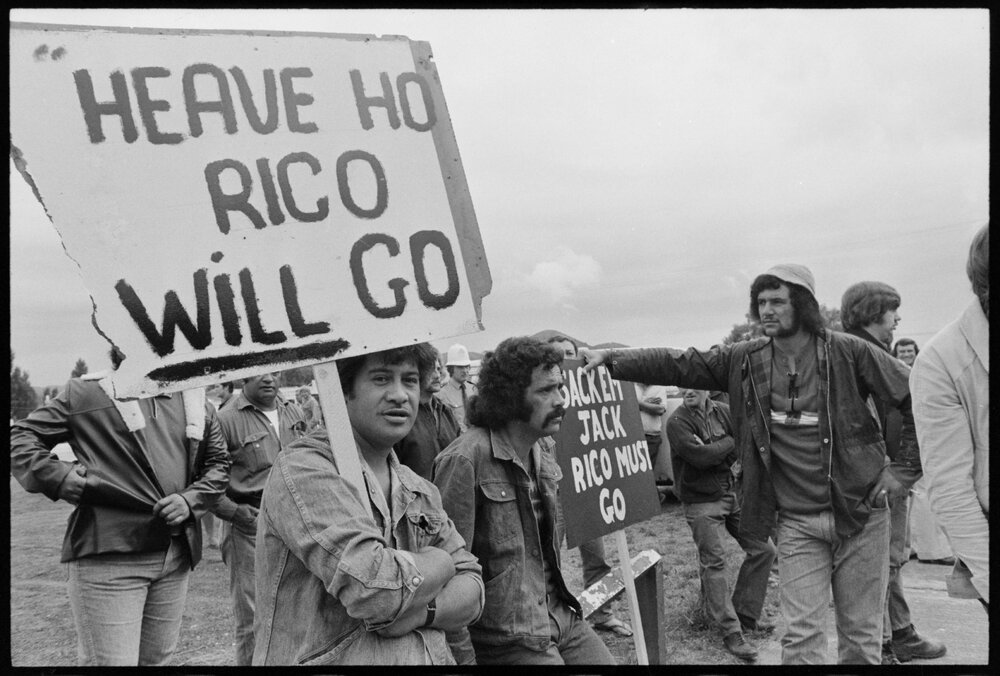 Date16 December 1974Reference Numberphoto gcc-31207DescriptionA rally of 527 workers protest at the municipal offices in Kawerau amid employment issues at Fletcher Construction. Published 16 December 1974.FormatNegativePhysical Description35mm black-and-white negative (2/15)Photographer/CreatorBay of Plenty Times