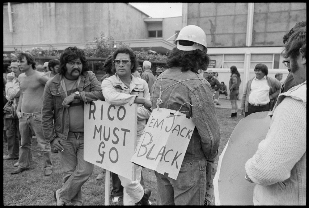 Date16 December 1974Reference Numberphoto gcc-31211DescriptionA rally of 527 workers protest at the municipal offices in Kawerau amid employment issues at Fletcher Construction. Published 16 December 1974.FormatNegativePhysical Description35mm black-and-white negative (6/15)Photographer/CreatorBay of Plenty Times