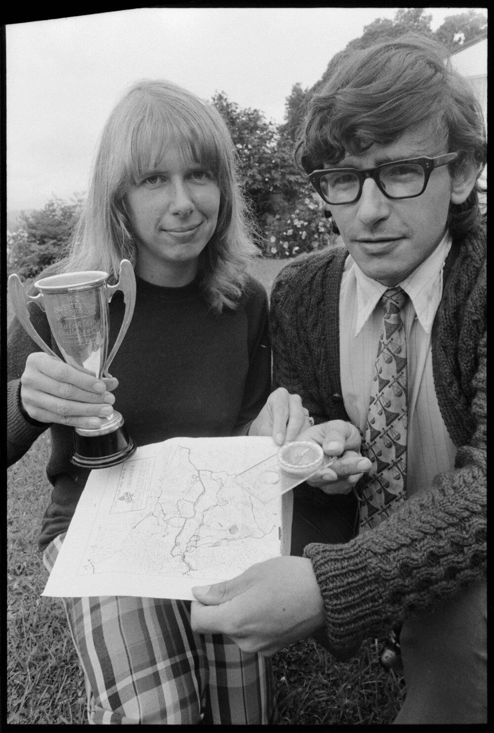 Date17 December 1974Reference Numberphoto gcc-31221DescriptionProudly holding the Ralph King Challenge Cup as the New Zealand senior women's orienteering champion is Mrs Trish Burbidge (left). Her husband Dick Burbidge, also pictured was fourth in the men's B grade event. Published 17 December 1974.FormatNegativePhysical Description35mm black-and-white negative (1/5)Photographer/CreatorBay of Plenty Times